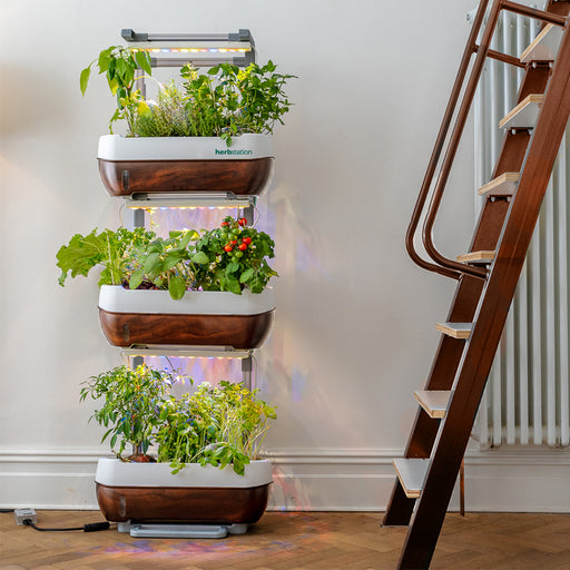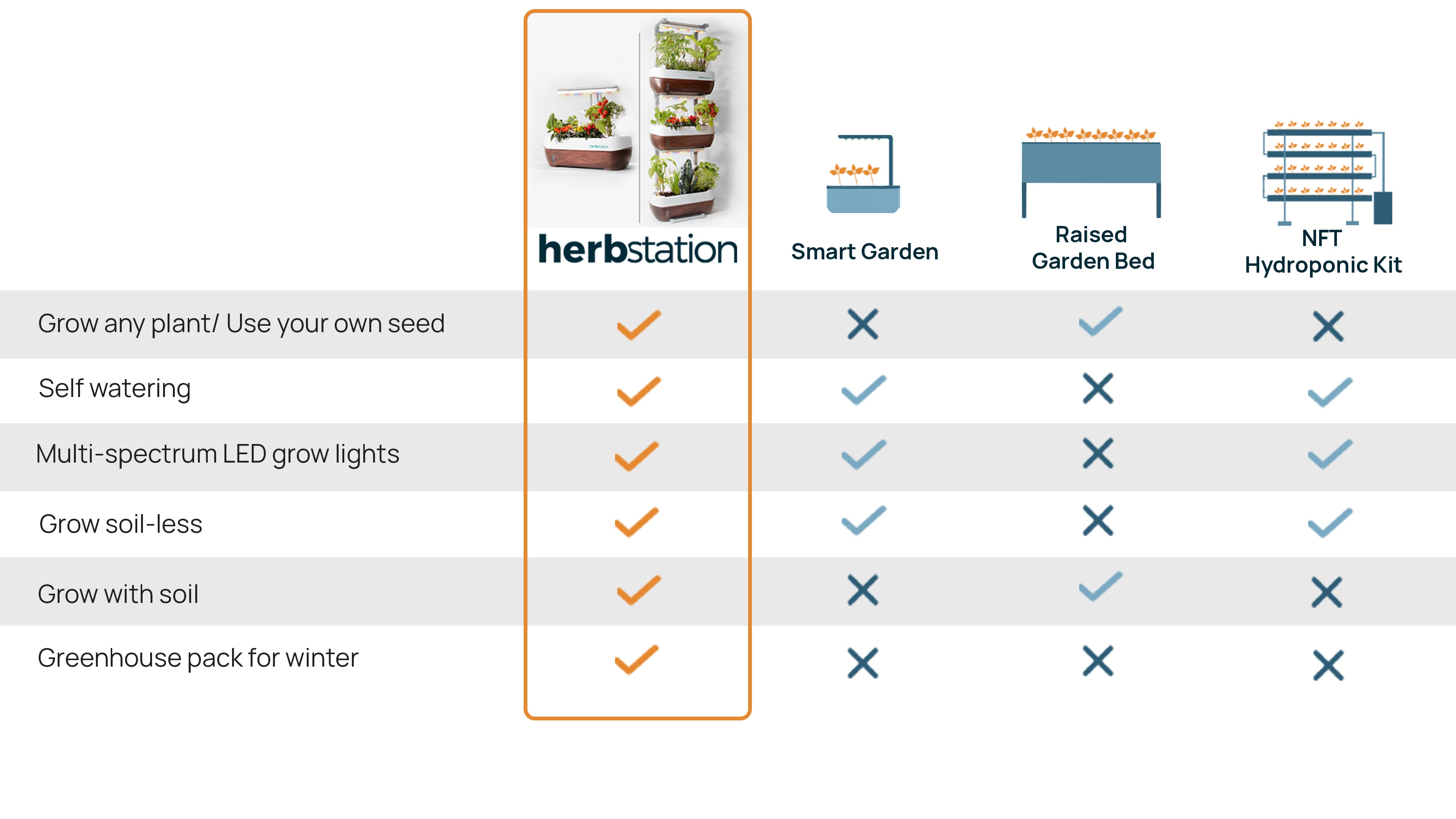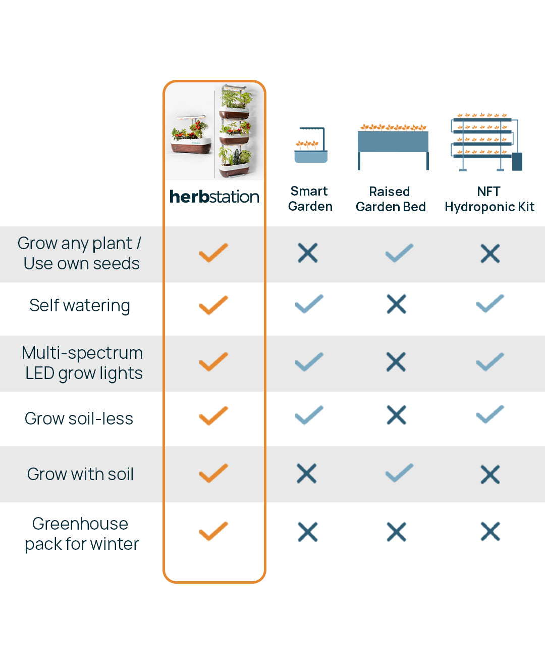 Herbstation gives you the freedom to grow as you like. Grow with garden soil and seeds of your choice Or full hydroponic (coco-peat + added nutrients in water). No need for seed pods, subscriptions or recurring costs.