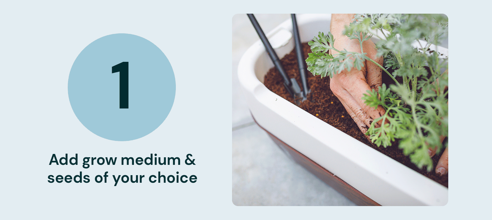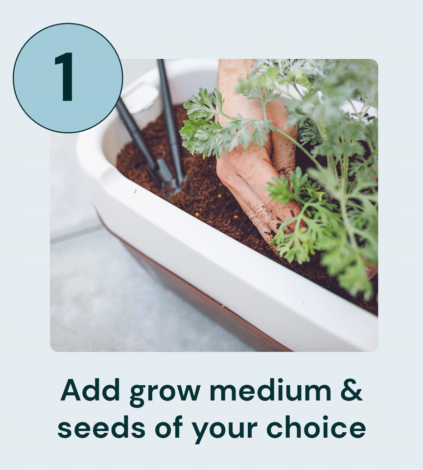 From garden soil and seeds of your choice to full hydroponic (coco-peat + added nutrients in water). No seed pods, subscriptions or recurring costs.